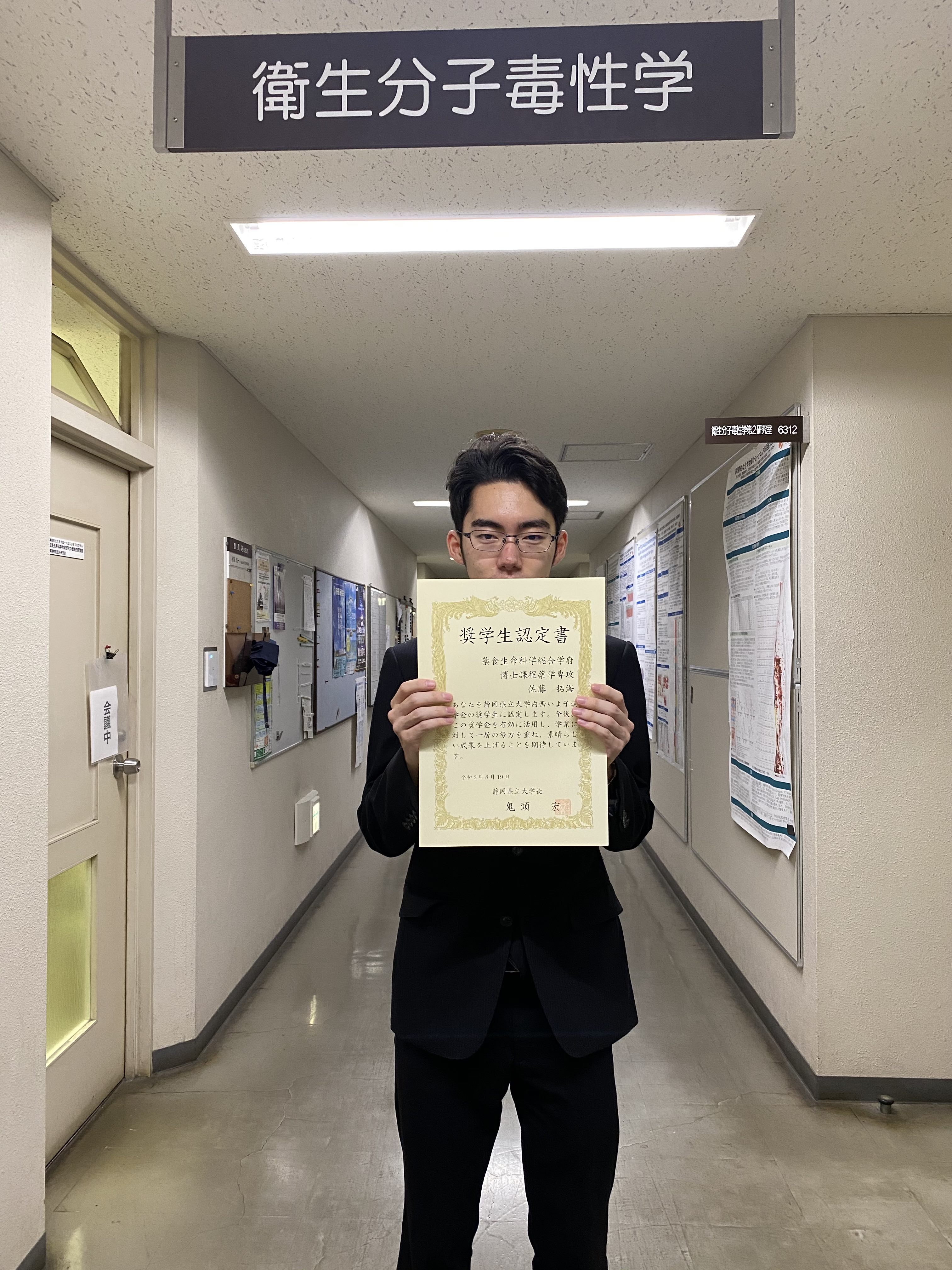 宮埼宏大くん(4年生)が第8回 医薬品毒性機序研究会(北海道、オンライン)で優秀発表賞を受賞しました。